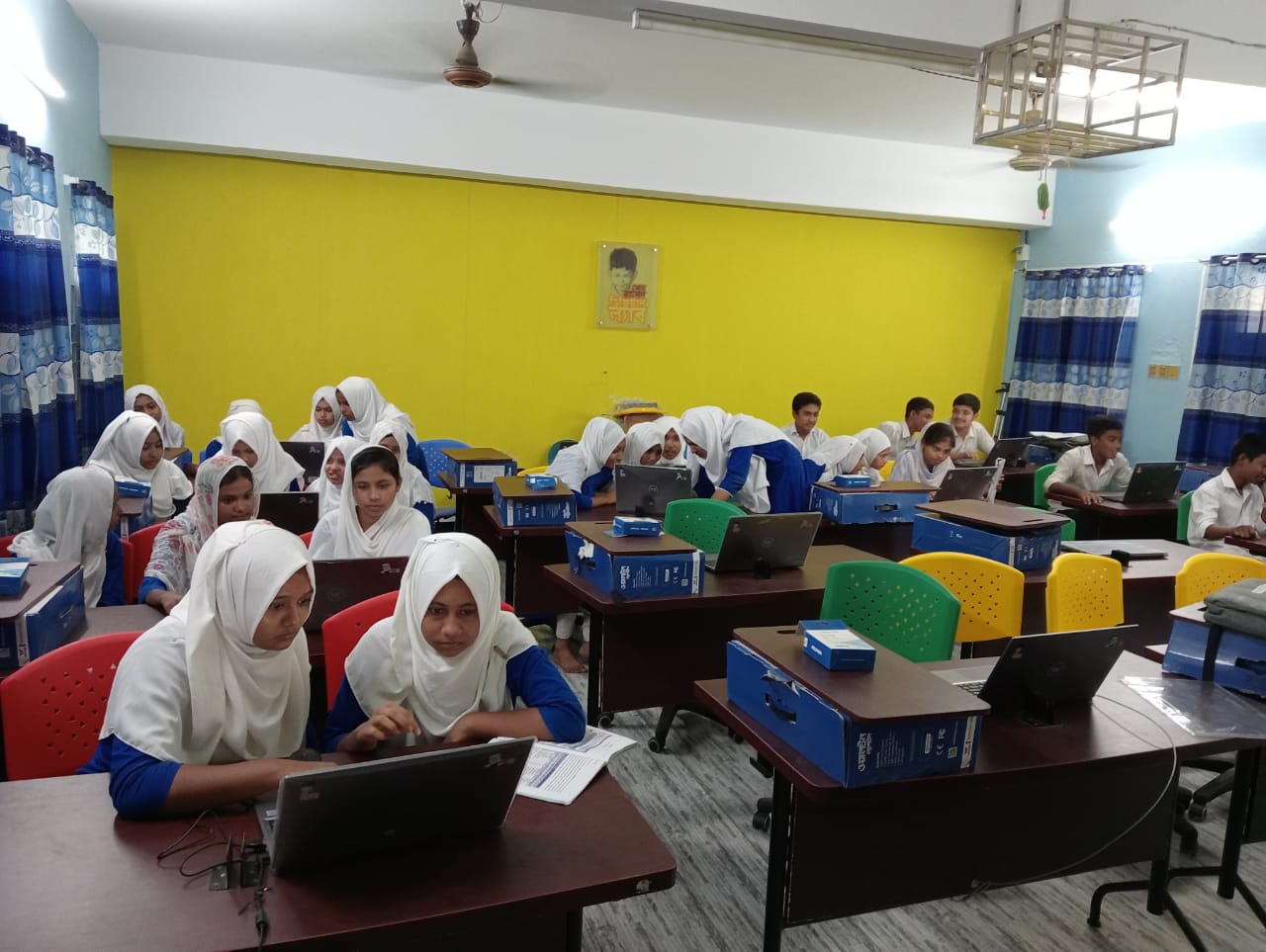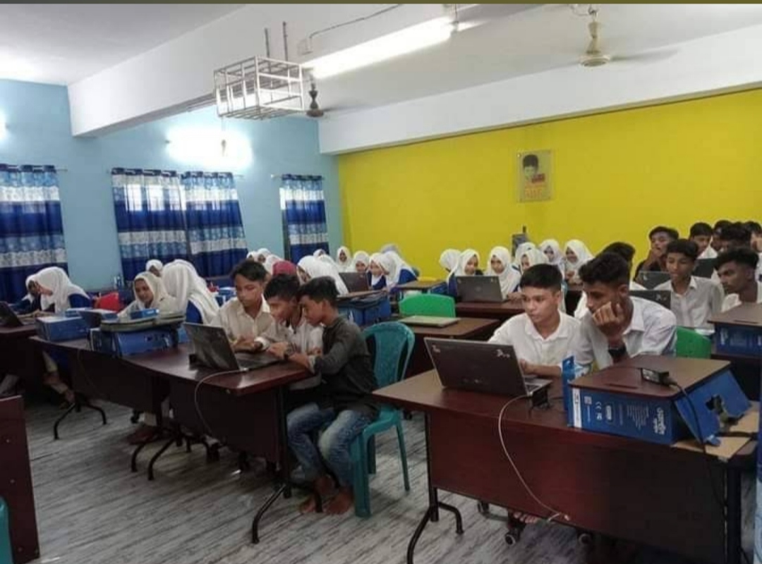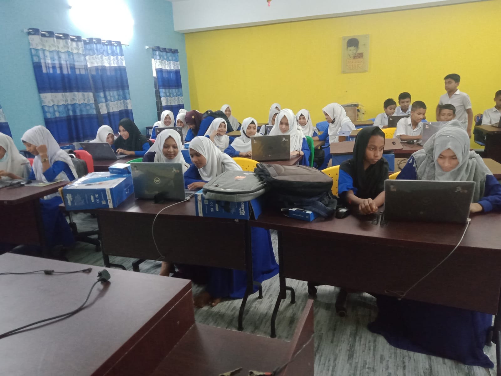 শেখ রাসেল ডিজিটাল ল্যাবে শিক্ষার্থীদের তথ্য ও যোগাযোগ প্রযুক্তি ক্লাস।