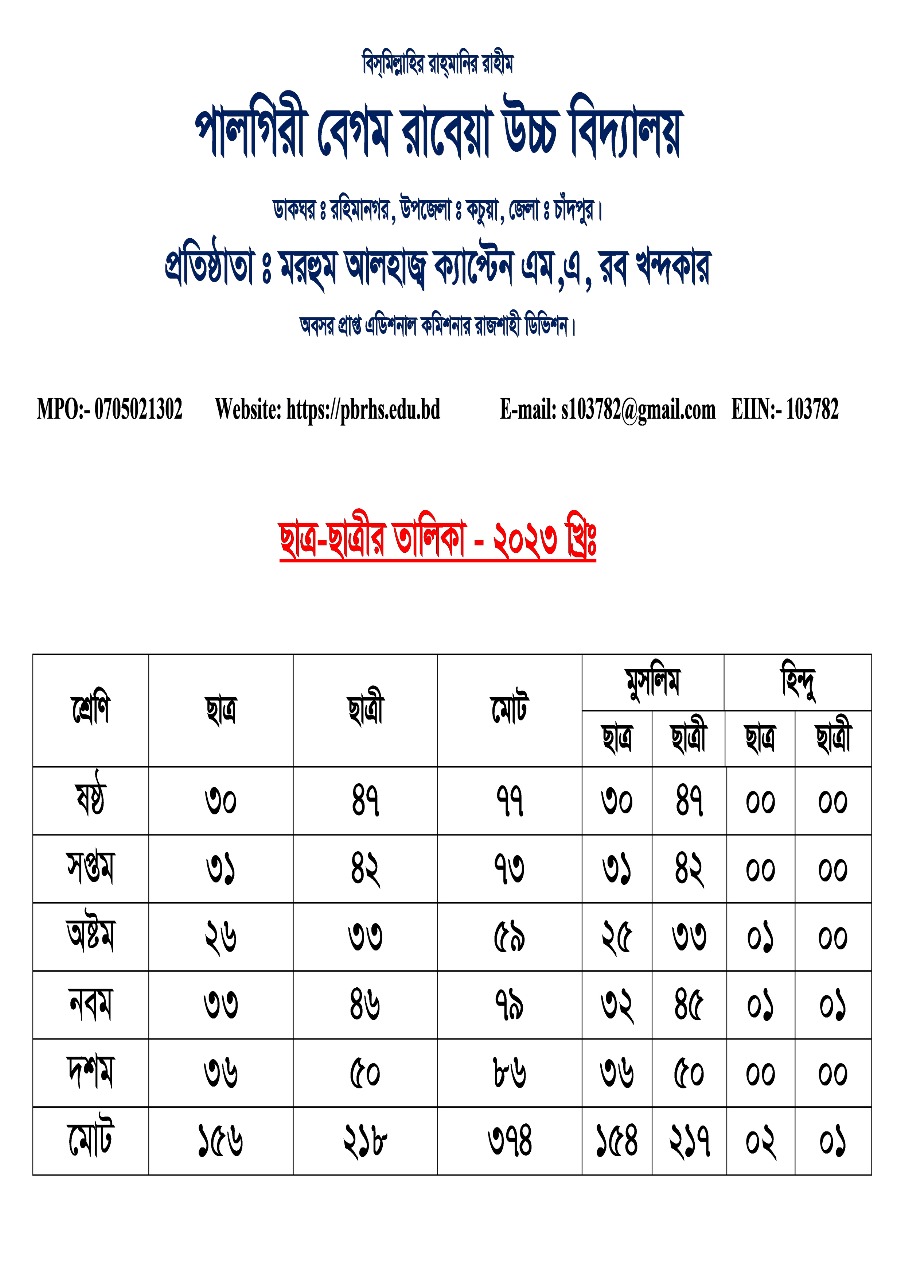 ছাত্র-ছাত্রীর তালিকা - ২০২৩