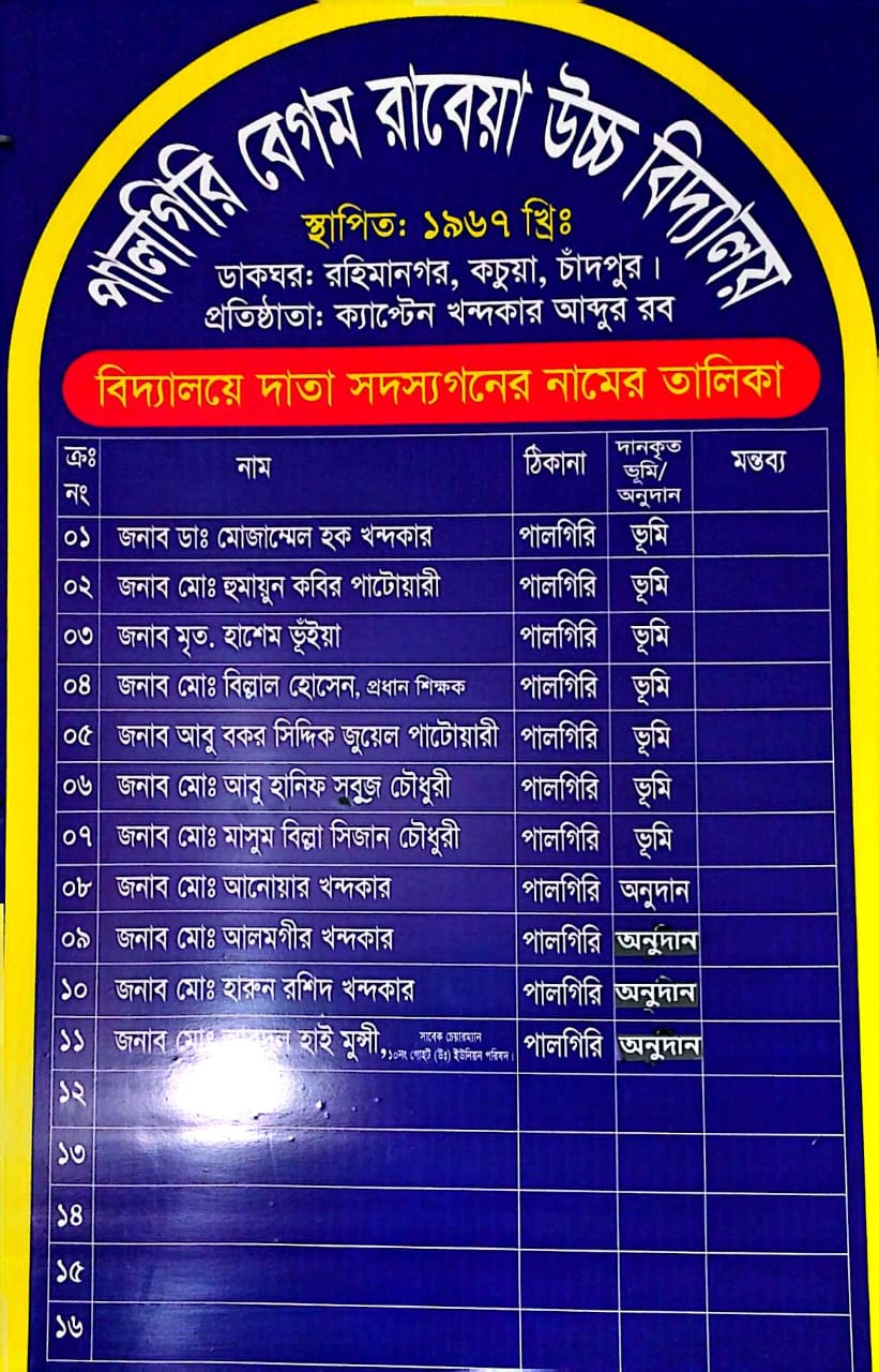 বিদ্যালয়ে দাতা সদস্যগনের নামের তালিকা