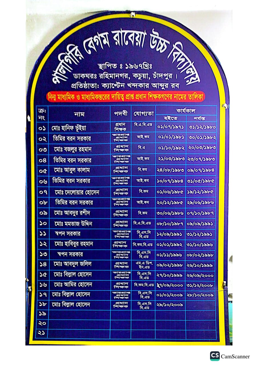 নিম্ন মাধ্যমিক ও মাধ্যমিকস্তরের দায়িত্ব প্রাপ্ত প্রধান শিক্ষকগনের নামের তালিকা ও কার্যকাল
